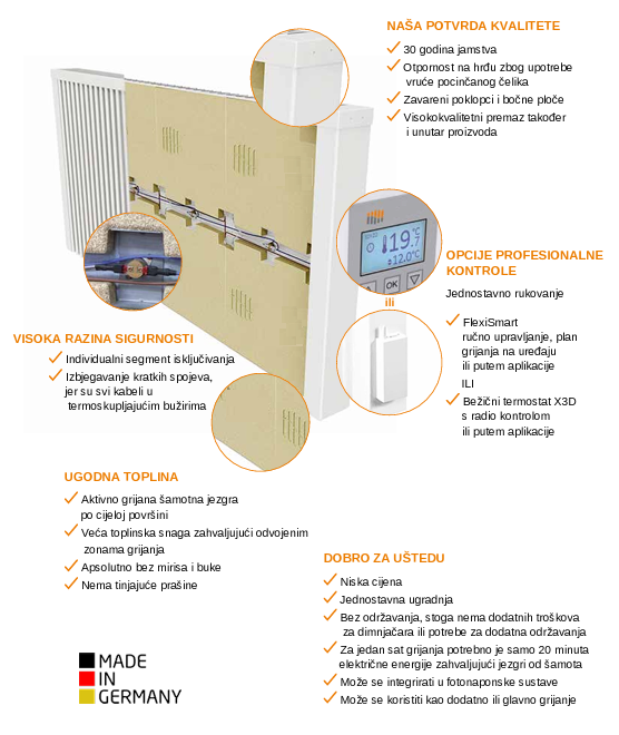 | Načini upravljanja: | Ručni način rada ili moguće grijanje prema rasporedu |